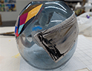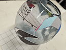 As I delineate perspective lines over a tight spherical surface, they become stretched, topologically distorted, and broken. During the process, various of the papers extrude glue and readily wrinkle when pressed to the glass. Matter is displaced. The images critique key events in human history such as the invention of linear perspective in the 15th century that reinforced a hierarchival, patriarchal worldview. They explore non-Euclidian geometry, historical landmarks, and the era of space exploration.